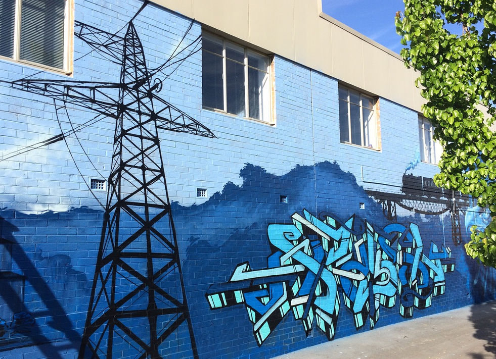 Damien helped paint this huge mural with two other artists as a tribute the history of the town of Morwell. We were asked to include Hazlewood Power Station and some other features of the surrounding area.